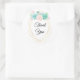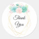 Obrigado, adesivo com um buquê de água suculenta. Estas flores suculentas, folhas e galhos são cor-de-rosa pastel macio e verde-menta. Uma estrutura geométrica de tendência com uma falsa borda de folha de ouro rodeia seu texto.