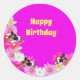 Adesivo Redondo Suínos E Flores Rosa, Pinheiros Redondos
