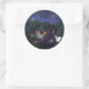 A arte Starry Night de Traci Van Wagoner impressão, posters, acessórios e presentes mostra nossa pintura original de duas crianças e seu grande e negro cão acampando sob as estrelas lendo um livro fantástico ao redor de um fogo no acampamento sobre cavaleiros e dragões. A magia da história está subindo no céu estrelado para mostrar um cavaleiro e um dragão numa dança eterna noturna de estrelas. Aproveite um acampamento noturno de verão nas montanhas.