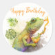 Adoráveis adesivos de aniversário com um camaleão celebrando seu aniversário. Para pessoas de verão. Personalize este produto com qualquer texto.