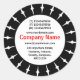 Um modelo de adesivo com um atraente raio solar preto e branco. Esta versão foi projetada com campos para nome de uma empresa e detalhes de contato. Embora o texto seja bastante pequeno no adesivo de 1,5", ele deve ser perfeitamente legível.