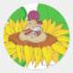 Uma garotinha senta-se sobre um girassol. O girassol é a flor nacional da Ucrânia.