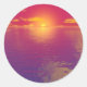 Um nascer do sol ou pôr do sol sobre um oceano sem fim. Um design CGI 3d.