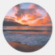 Imaginem-se nesta suave praia havaiana observando o pôr do sol laranja no horizonte! Ondas tropicais quentes chegam a praia úmida de areia. As nuvens escuras e o céu azul são incendiados em cor laranja brilhante e vibrante. Parte da ilha havaiana pode ser vista do lado da costa arenosa. O pôr do sol laranja reflete na interminável água tropical do mar nesta noite tropical no paraíso havaiano.