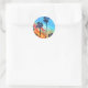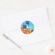 Praia do pôr do sol com palmeiras arte original de Sacha Grossel. A arte do tema da praia, sonhadora do pôr do sol vermelho e laranja no estilo original de aquarela. Tema do pôr do sol do surf.