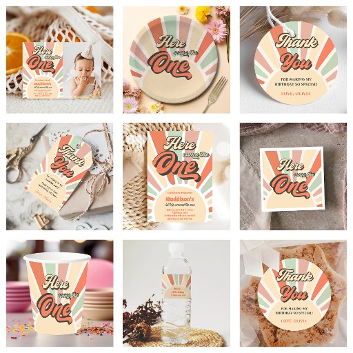 Sunshine Retro Arco-Íris Obrigado Festa de aniversário Clássico Redondo