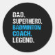 Adesivo Redondo Super Herói pai Badminton Treinador Engraçado Badm