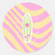 Adesivo Redondo Surfboard Rosa, Arte de Praia, Víblias Tropicais,