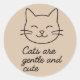Um rosto minimalista de arte-line com texto escrito à mão: "Os gatos são gentis e gentis." Um tributo ao charme felino e ao calor.