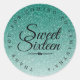 Um adesivo Sweet 16 moderno, bonito, ou selo de envelope apresenta um padrão esmeraldo verde brilhante ombre e o texto "Doce Sessenta" na caligrafia manuscrita em preto. Simplesmente personalize o obrigado que você cola com seu nome. Perfeito para um doce glamouroso dezesseis, perfeito para ela, a modista que ama padrões modernos, brilho, luxo e brilho.