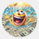A joyful person swimming in a sea of gold coins and dollar bills, arms outstretched, enjoying wealth and success. A fun and vibrant design symbolizing prosperity and abundance!