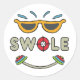O design de construção de carroças apresenta algum suor acima de um par de tons, a palavra "Swole" com o "o" como alvo, e um sorriso feito de um conjunto de pesos. Uma design divertida para levantar e intimidar fãs.