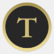 Adesivo Redondo T: Monograma T Elegante Dourado e Preto