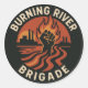 The Burning River Brigade is Cleveland, Ohio's chapter of the Visibility Brigade, a political action group working towards removing the Trump regime. This is a paper sticker featuring the logo.