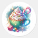 Adesivo Redondo Taça de Natal bonito de Aquarela com Cacau Quente