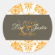 Adesivo Redondo Tampas de casamento do monograma Orange Damask