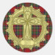 Adesivo Redondo Tartan Xadrez Celtic Cross Christmas Xmas
