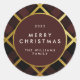 Adesivo Redondo Tartan Xadrez Vermelho Escuro e Dourado Feliz Nata