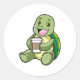 Adesivo Redondo Tartaruga com Shell e Café para ir