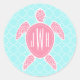 Adesivo Redondo Tartaruga-do-mar Rosa Monograma + Folha-do-Quatref