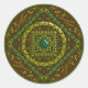 Esta mandala temática Taurus apresenta uma pedra esmeralda cercada pelo símbolo do sinal, a constelação, e o símbolo alquímico da Terra entre filigrana e tecelagem.
