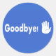 Famous Blue background com "GoodBye!" impresso em branco e simples mão branca de ondas brancas.