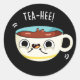 Adesivo Redondo Tea Hee Funny Tea Cup Pun Dark BG