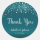 Adesivo Redondo Teal Escuro e Pontos de Confetti Prateados