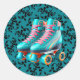 Adesivo Redondo Teal Neon Rollerskate Festa de aniversário