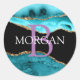 Adesivo Redondo Teal, Preto e Agato Dourado, Nome do DIA e Monogra