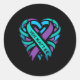 Adesivo Redondo Teal Purple Heart You Suicida Prevention Sensibenc