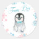 Adesivo Redondo Team Boy Penguin Winter Gender Reveker