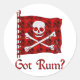 Uma bandeira pirata vermelha com um crânio branco estalado e ossos cruzados cumprimenta aqueles prestes a conselho seu barco com a pergunta essencial do marinheiro: "Você tem Rum?" presente de excelente para o seu cachorro salgado favorito.