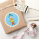 Este adesivo com tema circo apresenta um fundo azul rodeado por um padrão repetitivo de estrelas vermelhas, azuis, amarelas e verdes. Um palhaço engraçado com cabelo azul segurando uma placa fica no centro do adesivo. Personalize a área modelo no sinal com seu nome ou outro texto personalizado. Esta design faz parte da minha coleção "Circus Themed Festa de aniversário". Clip-art por Prettygrafik design etsy.com/shop/Prettygrafikdesign