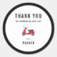 Adesivo Redondo Tema do Patinete Retro Vermelho Obrigado