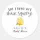 Adesivo de lembrancinha de chá de noiva rústico e moderno com ilustração em aquarela da fruta cítrica. O texto diz "Ela encontrou seu amor".