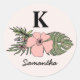 Adesivo Redondo Tendência tropical rosa e verde deixa monograma