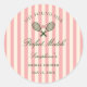 Celebre o amor e o estilo com estes rótulos Perfect Match Tennis Bridal Shower, projetados com listras suaves em rosa e sotaques verdes. Este design elegante e moderno combina uma estética preppy de dinheiro antigo com um chá de panela temático de esportes chiques, tornando-o perfeito para uma celebração inspirada em um clube social de tênis ou no campo. Com a frase divertida “ela encontrou sua alma gêmea”, estes adesivos listrados são ideais para noivas que amam detalhes polidos, paletas de cores clássicas e um visual atemporal, porém fresco.