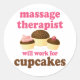 O design de chocolate bonito tem a citação "Terapista de Massagem - Trabalhará para Cupcakes", em rosa. Dê um presente de ocupação engraçada ao seu massagista favorito.