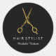 Adesivo Redondo Tesoura Dourada Personalizada Trendida Cabelo Salã
