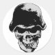 Design de crânio vestindo um capacete de guerra alemão, olhando para baixo.