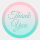 Fundo úmido cor-de-rosa suave e gradiente de turquesa com uma cobertura de círculo branca. Mensagem de texto personalizável "Obrigado" em uma fonte moderna de caligrafia leve fluindo. A opção de espaçamento de linha definida para este design pode ser modificada. Um bonito obrigado que você cola para seus convidados. Vestidos de casamento.