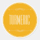 Adesivo redondo clássico de texto branco amarelo turmérico personalizado moderno. Espero que goste!
