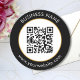 Adesivo Redondo Texto de código QR personalizado branco preto