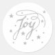 Adesivo Redondo Texto De JOY No Faux Silver Glitter Olhando Com Es