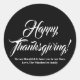 Texto personalizado de Ação de Graças Feliz e nome bonitinho rústico e elegante etiquetas favoritas rústicas Clássicas de Palavras redondas. Típica de caligrafia de script elegante. Texto branco totalmente personalizável sobre fundo preto. Excelente como etiquetas de presentes para presentes e favores personalizados. O design é simples e elegante e também pode ser usado em ambientes profissionais, empresariais e de escritório, como é totalmente personalizável.
