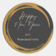 Adesivo Redondo Texto do feliz ano novo corante dourado cinza escu