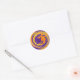 Halloween voando bruxa sobre vassoura com neon orange amarelo e feitiço mágico roxo Rodando texto personalizável assustador e fofo adesivos engraçados. Com texto totalmente personalizável. Excelente como favoritos personalizados do partido, etiquetas de presentes para as guloseimas de Halloween.