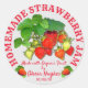 Morangos maduros, deliciosos e criados organicamente, prontos para adicionar o toque final a potes de compota caseira. Personalize o rótulo para atender às suas necessidades, é fácil mudar a cor do texto também.