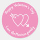 Corações bonitinhos, cor-de-rosa e branco, texto personalizado de script elegante e elegante, adesivos redondos clássicos modernos